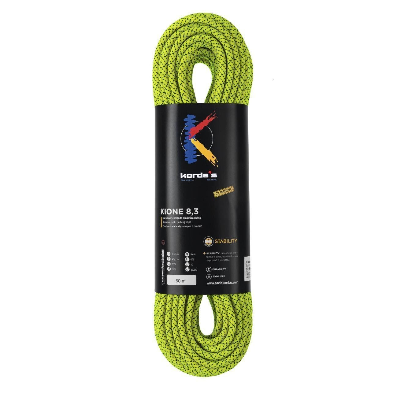 KIONE ist ein modernes Seil für das klassische Klettern mit Doppelseil. Es ist sehr leicht, einfach zu handhaben und hat einen weichen Griff.